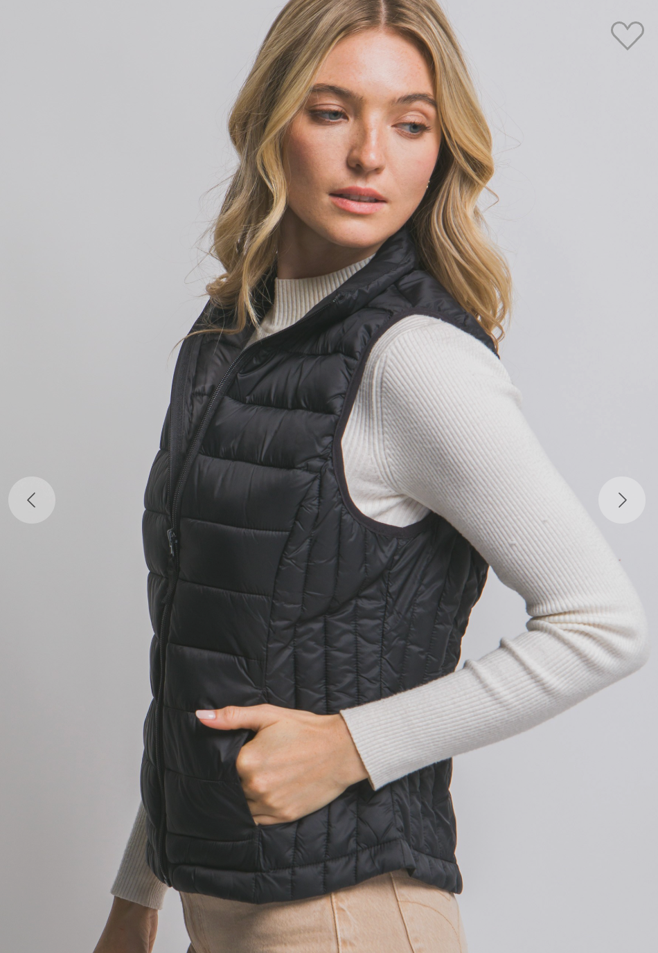 Black Lightweight Down Packable Puffer Vest - True Fit - S is backordered and will ship as soon as it is back in stock.