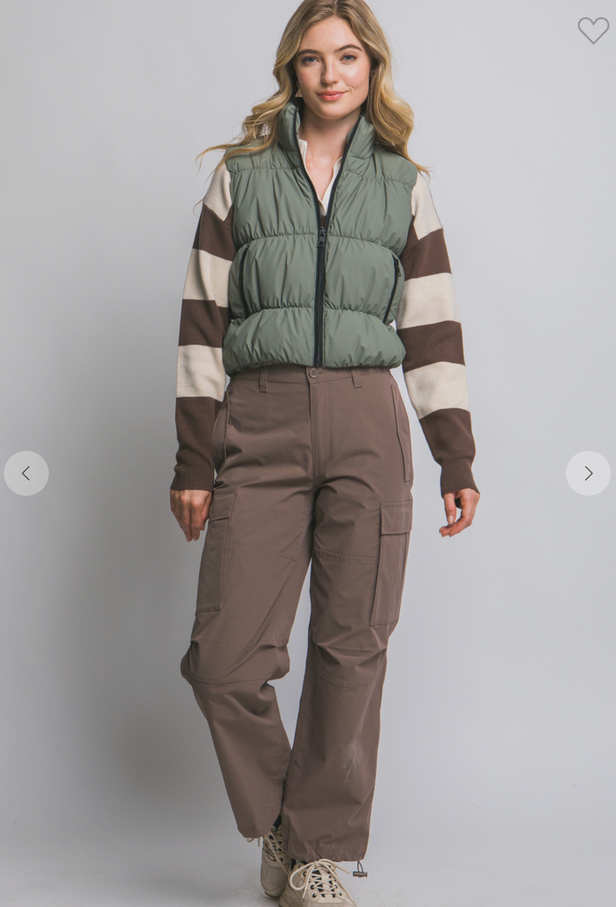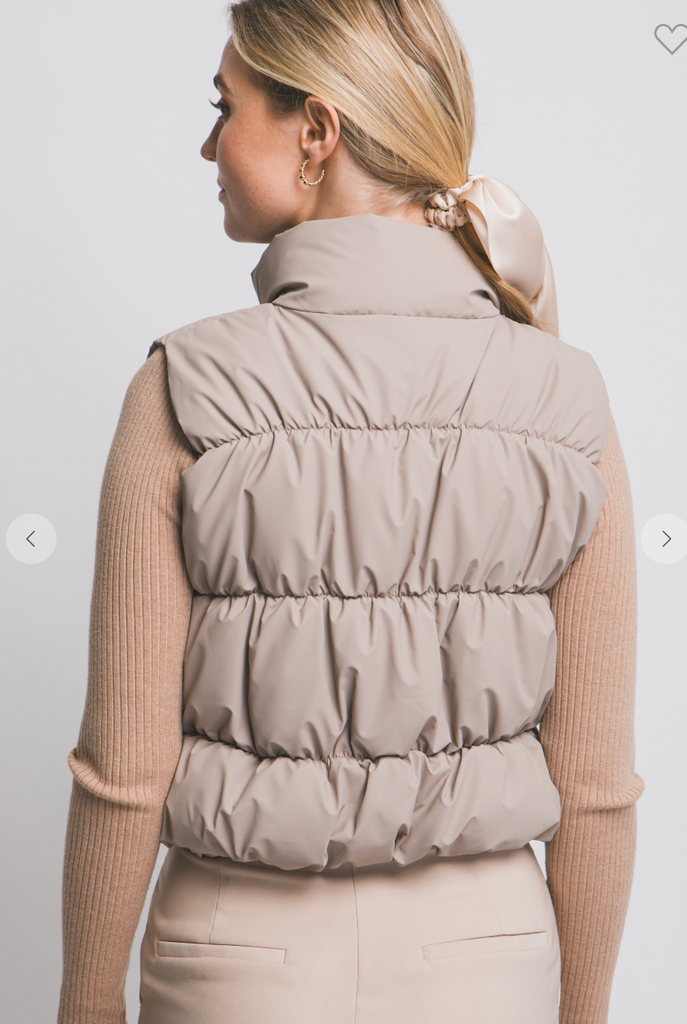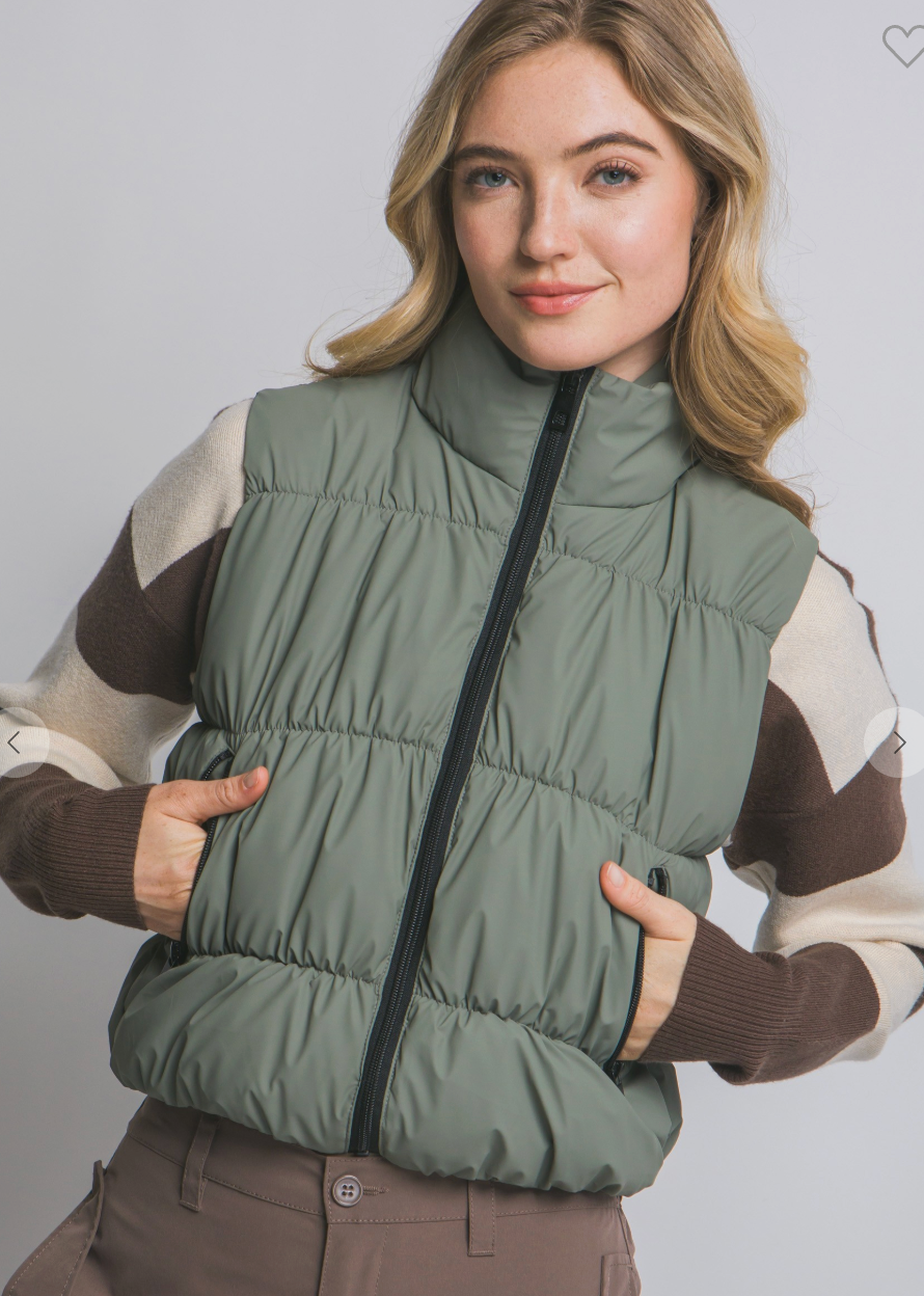 Olive Quilted Full-Zip Puffer Vest - True Fit - S is backordered and will ship as soon as it is back in stock.