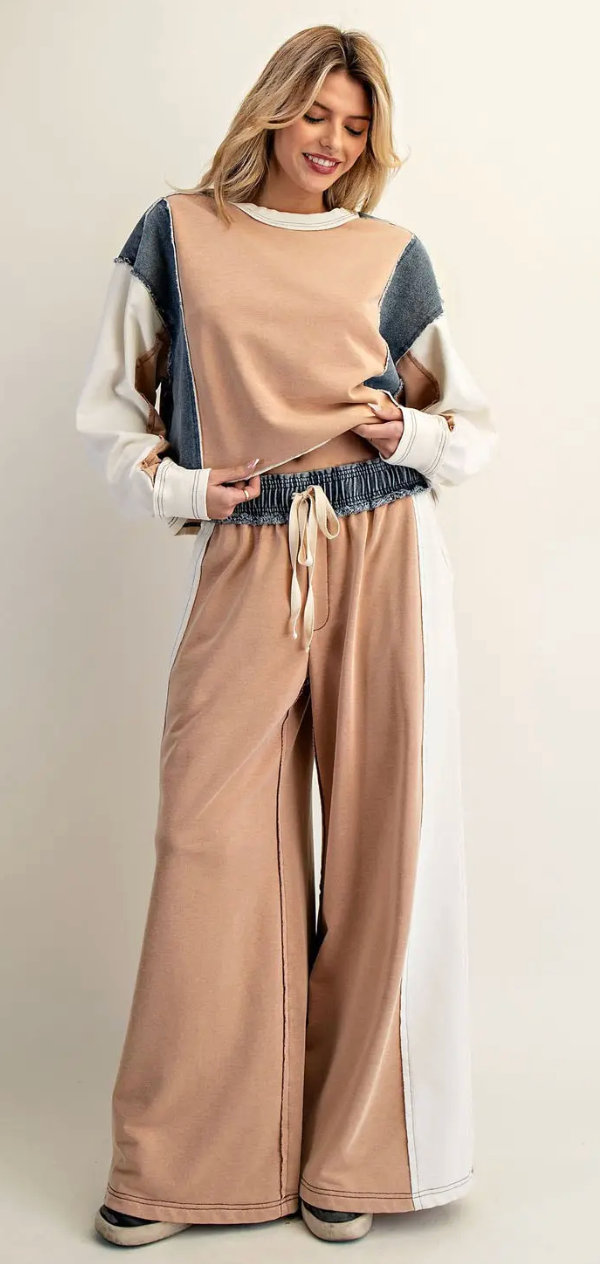 Color Block Denim Drawstring Pants - True Fit - S is backordered and will ship as soon as it is back in stock.