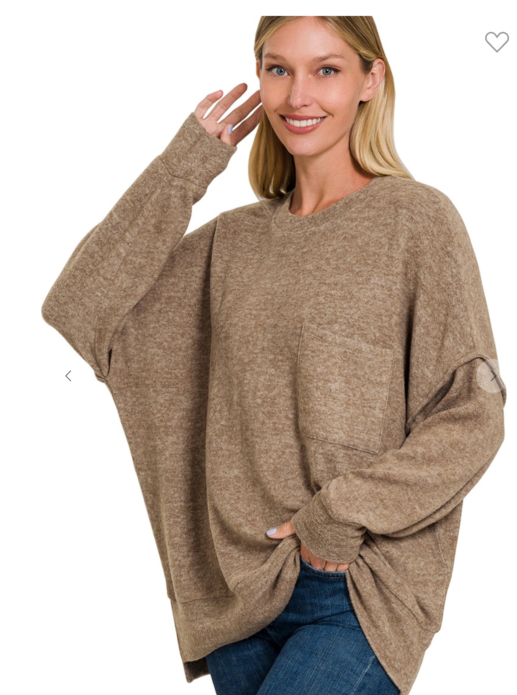 Very Soft Mocha Sweater w/Front Pocket - Generous Fit